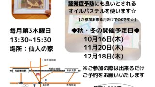■イベントのお知らせです■東京都西東京市内のコミュニティサロン【仙人の家】にて【ほめ活♪お絵かきアート】イベントvol.12~13の開催が決定致しました!それぞれ、5月15日(木) 13:30~15:306月19日(木) 13:30~15:...