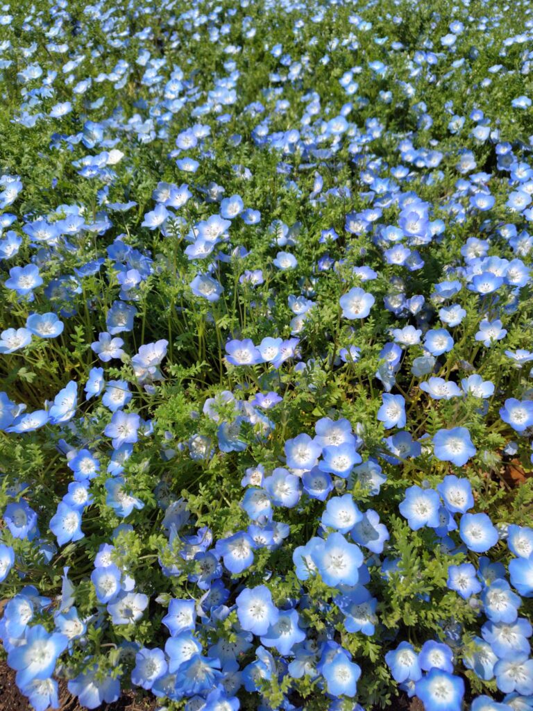 とはいえ、茨城県のひたち海浜公園の、見はらしの丘のネモフィラたちは、